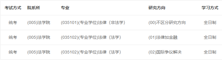 法律(法學)全日制:學制為2年,學費25000元/學年