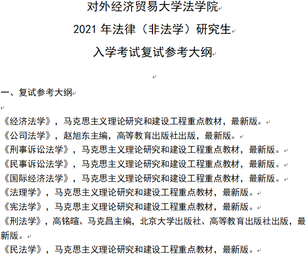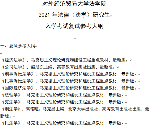 以下為對外經濟貿易大學法律碩士2021年復試參考書目: