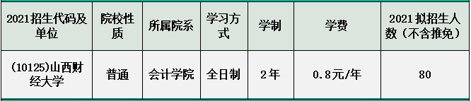 山西財經大學2021年審計碩士專業全日制擬錄取人數為95人。