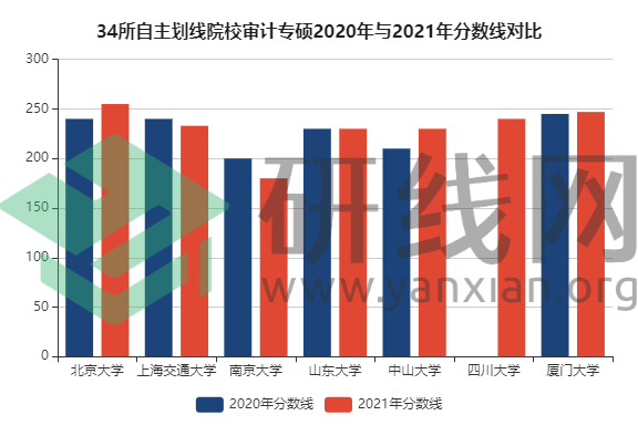 34所自主劃線院校審計專碩2020年與2021年分數線對比