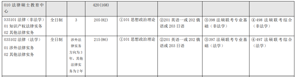 2021年法律(非法學)擬招生人數是205人