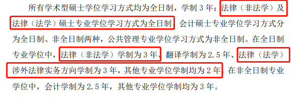 法律(法學)涉外律師方向:3年,其他法律實務方向為2 年學制