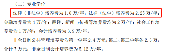 法律(非法學):學制3年,學費1.8萬/年