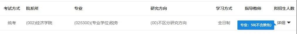 安徽大學2021年稅務碩士擬錄取人數為50人