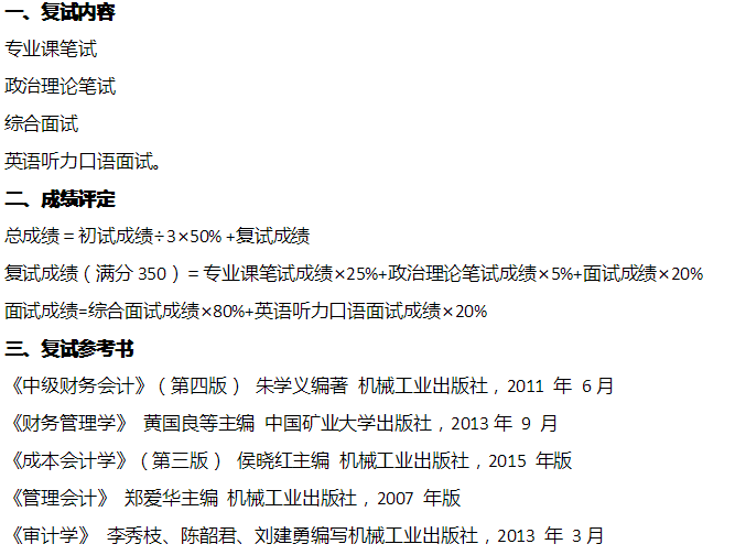 【復試資料】2019年中國礦業大學(北京)會計碩士復試科目、參考書目以及錄取最低分等