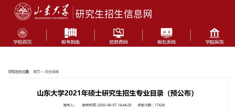 山東大學2021年碩士研究生招生專業目錄(預公布)