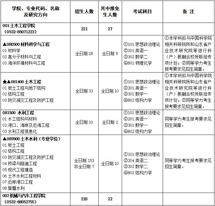 說明:1、專業目錄中標★學科為具有博士學位授予權的學科;2、專業目錄標▲為該學科專業為省級重點學科或有省級及以上科研平臺;3、實際招收推免生人數一般小于專業目錄所列推免生人數;4、復試科目等相關信息屆時請關注研究生處網站。