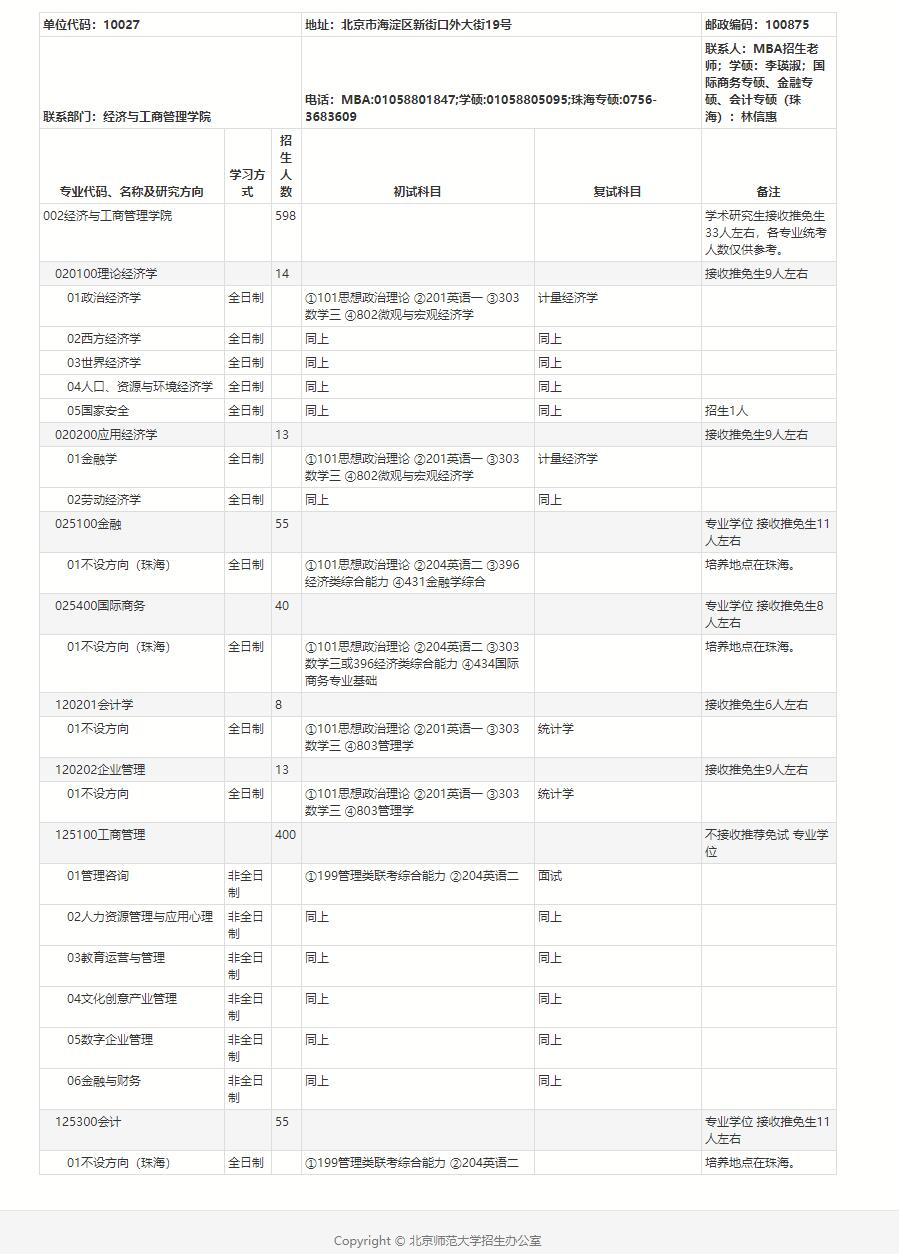 以上就是“2021考研專業目錄:北京師范大學經濟與工商管理學院2021年碩士研究生招生專業目錄”的全部內容!祝您考研成功!更多考研動態、院校資訊請持續關注研線網