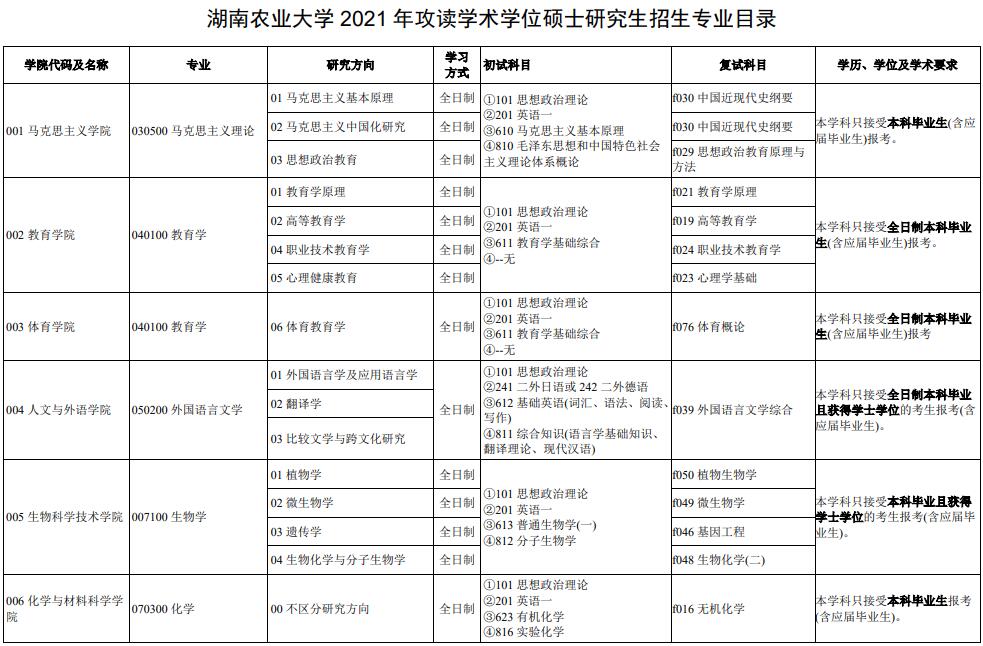 以上就是小編整理“2021考研專業目錄:湖南農業大學2021年攻讀學術學位碩士研究生招生專業目錄”的全部內容,想了解更多相關信息,請持續關注研線網!