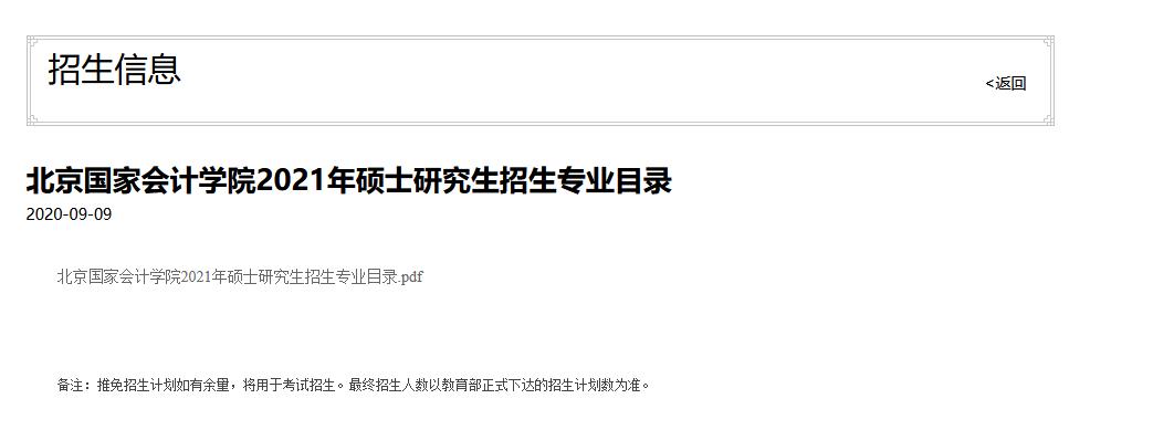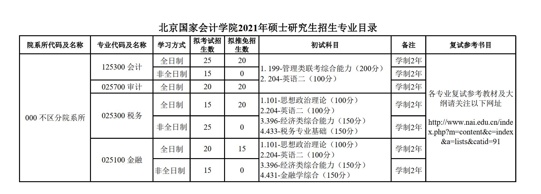 2021考研專業目錄:北京國家會計學院2021年專業學位碩士研究生專業目錄