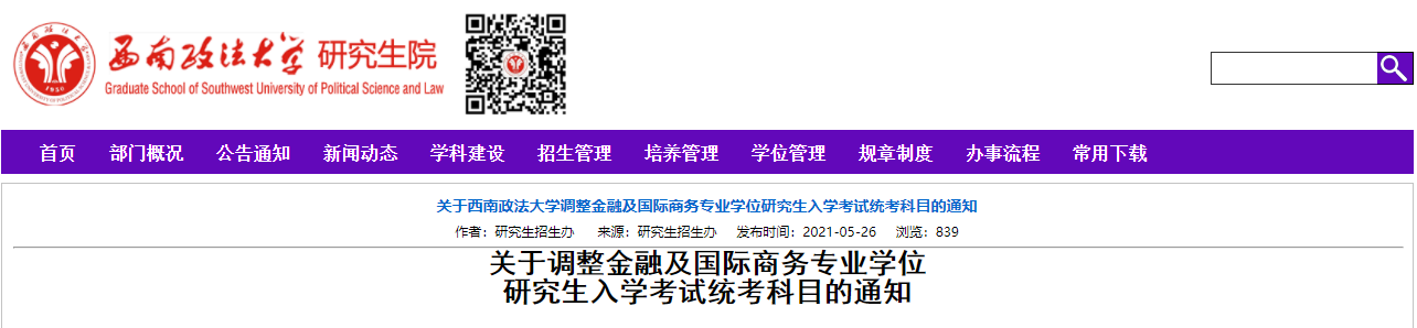 以上就是“2022考研科目調整:西南政法大學2022年碩士研究生金融及國際商務入學考試統考科目調整通知”的全部內容!祝您考研成功!更多考研動態、院校資訊請持續關注本網站!