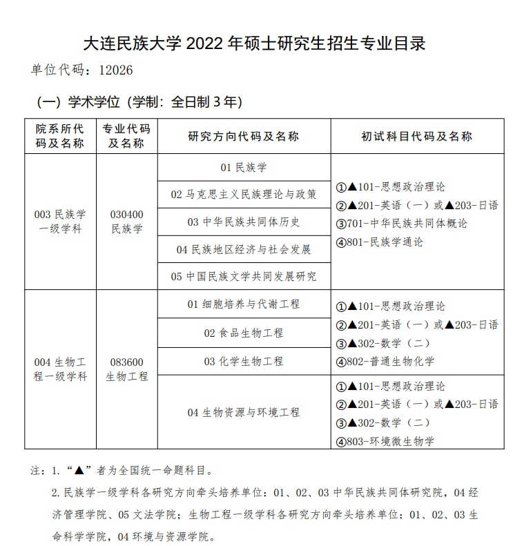 2022考研專業(yè)目錄:大連民族大學(xué)2022年碩士研究生招生專業(yè)目錄