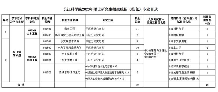以上就是“2023考研專業目錄:長江科學院2023年碩士研究生招生統招(推免)專業目錄”的全部內容!祝您考研成功!更多相關信息請持續關注本網站!