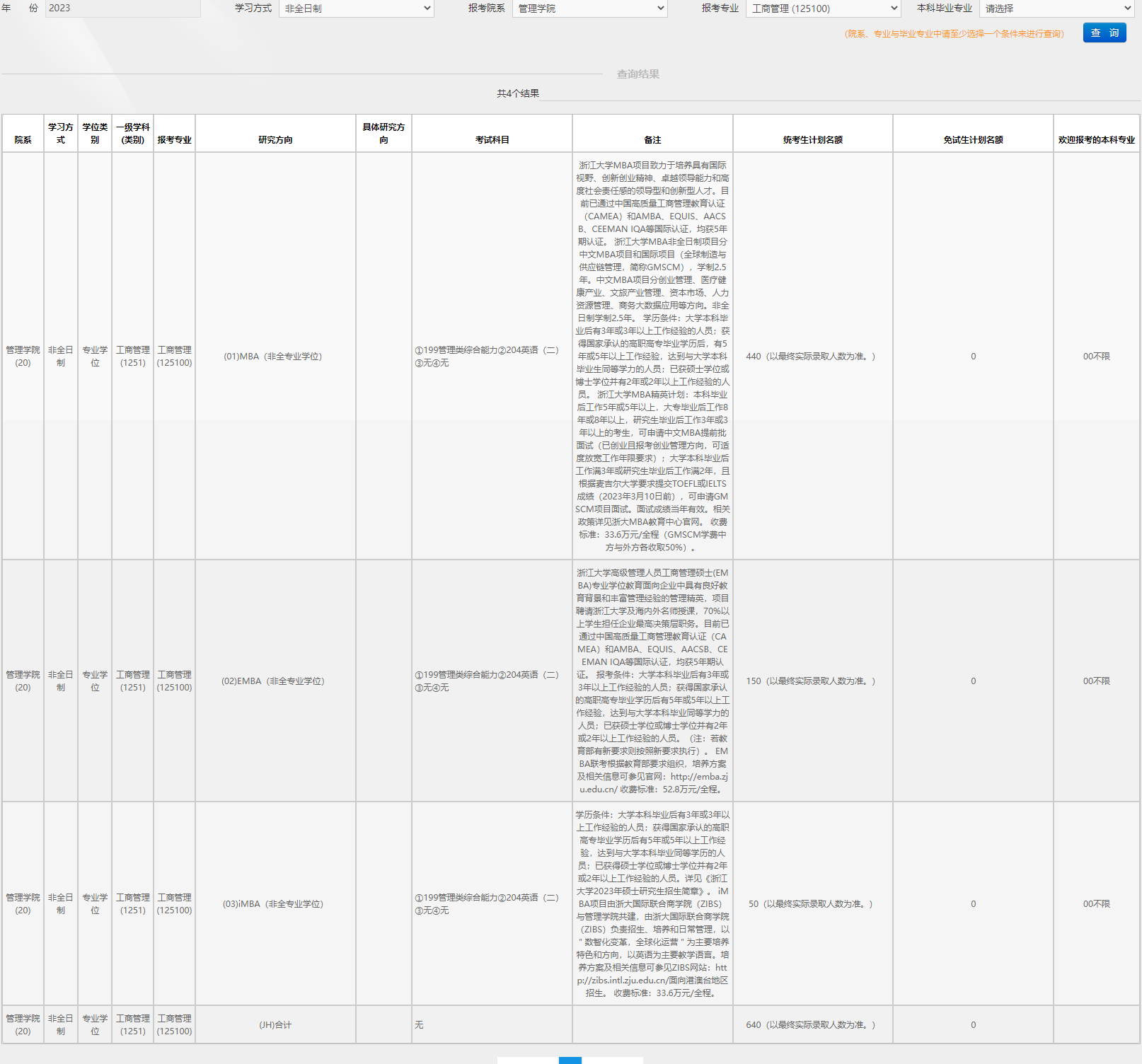 注:由于浙江大學專業目錄展示形式為選擇專業方式,所以大家可以在原文鏈接查看。