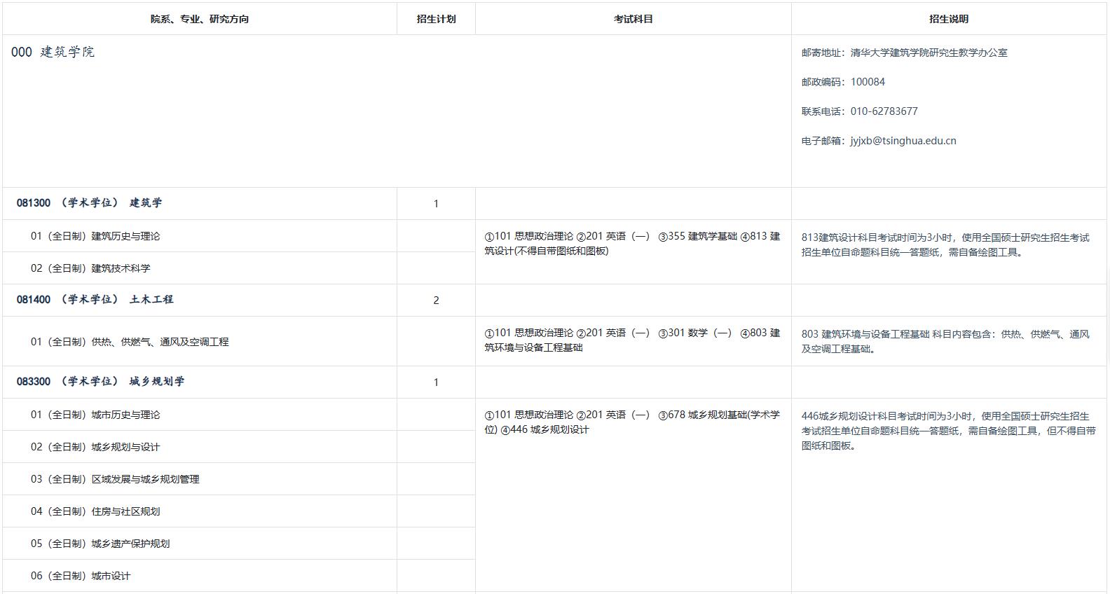 2024考研專業目錄:清華大學建筑學院2024年碩士研究生招生專業目錄
