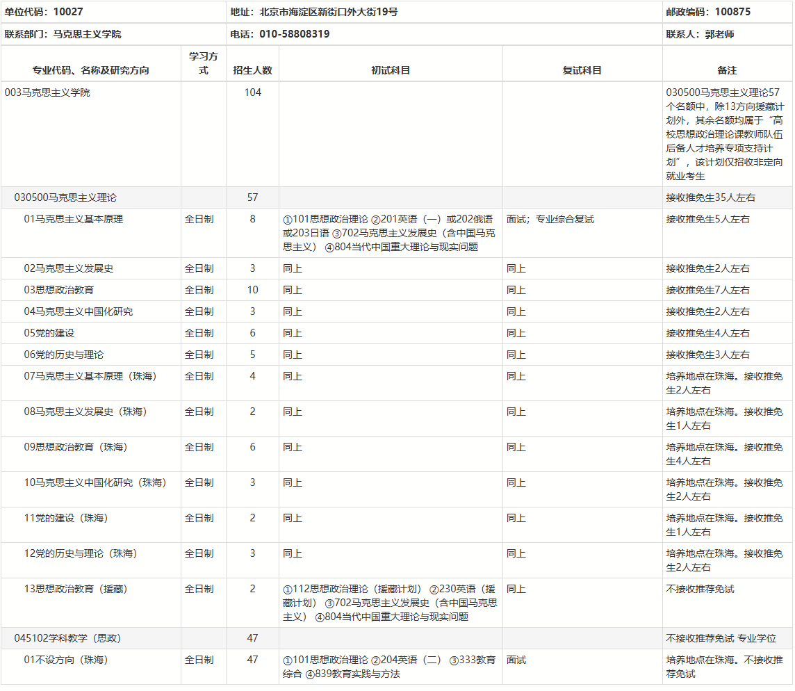 以上就是“2025考研專業(yè)目錄:北京師范大學(xué)馬克思主義學(xué)院2025年碩士研究生招生專業(yè)目錄”的全部內(nèi)容!祝您考研成功!更多相關(guān)信息請(qǐng)持續(xù)關(guān)注本網(wǎng)站!