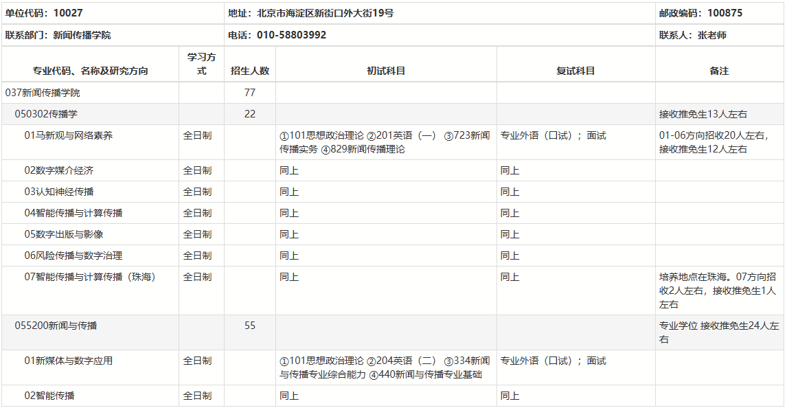 以上就是2025考研專業目錄:北京師范大學新聞傳播學院2025年碩士研究生招生專業目錄的全部內容!祝您考研成功!更多相關信息請持續關注本網站!