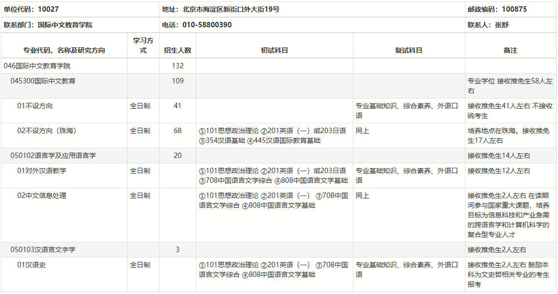2025考研專業目錄:北京師范大學國際中文教育學院2025年碩士研究生招生專業目錄