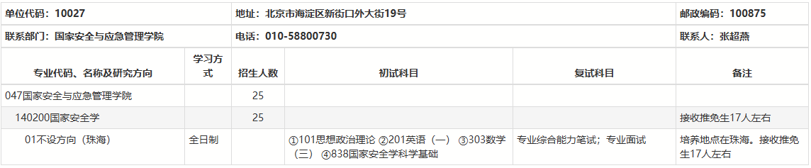2025考研專業目錄:北京師范大學國家安全與應急管理學院2025年碩士研究生招生專業目錄