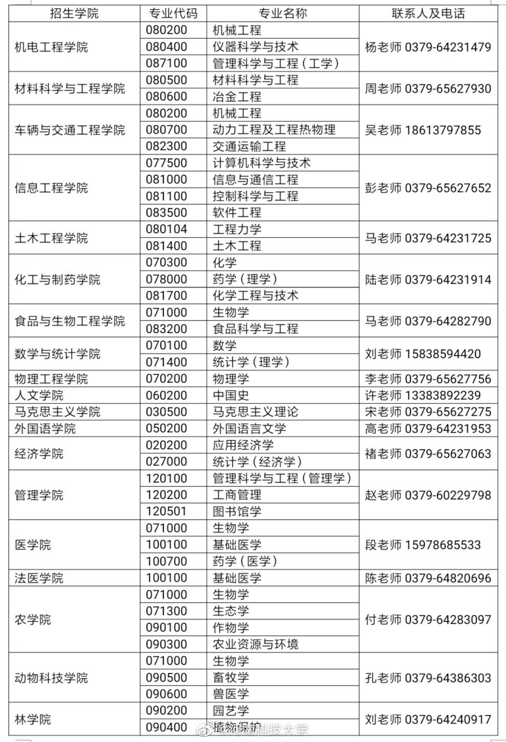 以上就是“河南科技大學2020年碩士研究生專業目錄”的全部內容!